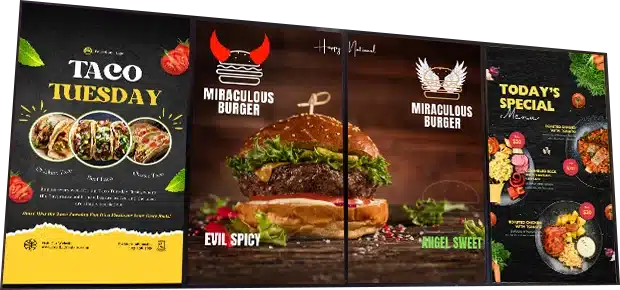 Écrans dynamiques pour intérieur ou vitrines – restaurants – commerce – hôtellerie