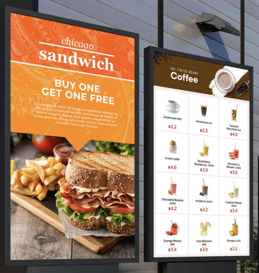 Écrans dynamiques pour intérieur ou vitrines – restaurants – commerce – hôtellerie